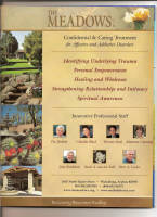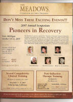 Below are samples of The Meadows Marketing. Left to right: 1.) The front page of an insert in The Meadows informational packet sent to patients depicting their Innovative Professional Staff.* 2.) The back page of the same insert marketing additional individuals also as Innovative Professional Staff. 3.) A full-page ad in the September/October 2007 issue of Psychotherapy Networker marketing The Meadows Pioneers in Recovery and 4.) A full-page ad the March/April 2007 issue of Psychotherapy Networker marketing these same individuals as Innovative Professional Staff. Click on each image to enlarge.
